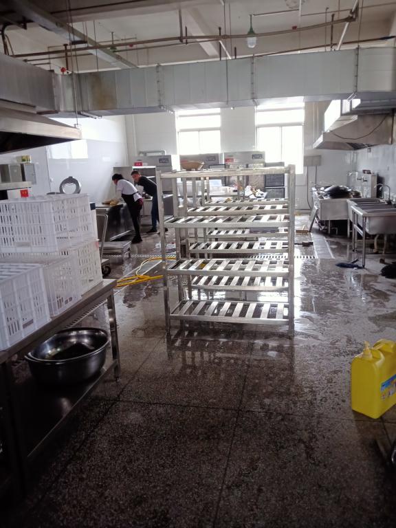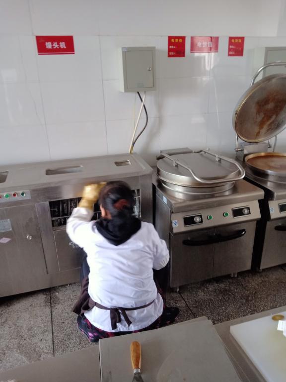 为确保教工餐厅4月20日正常开灶,一是要求餐饮公司从员工返程开始全程做好安全防护工作,返岗人员自驾私家车或餐饮公司安排专车点对点接送,且上岗人员必须在咸阳地区隔离观察14天以上,身体健康,持绿色健康码上岗;返岗工作期间须全程佩戴口罩,严格落实晨检制度和健康申报制度,做好检测记录,每日上班前检测体温,发现身体出现异常者应立即脱离工作岗位,到咸阳市中心医院就诊,确保食堂全体从业人员身体健康。同时做好员工食品安全及疫情防控知识培训工作;二是下功夫全面整治食堂内外卫生;三是定期对食堂灶具进行消毒,就餐期间,风机系统保持运行,开窗保证空气流通;四是在餐厅内LED大屏播放卫生防疫及安全就餐知识宣传;五是调整就餐座位,餐桌放置安全就餐提示牌,地面有排队就餐标识,合理管控人流密度,减少人员交叉和密度过大;六是在保障用餐标准的情况下,减少饭菜品种,提高饭菜质量;七是严格把好食材采购关,确保食材安全卫生。