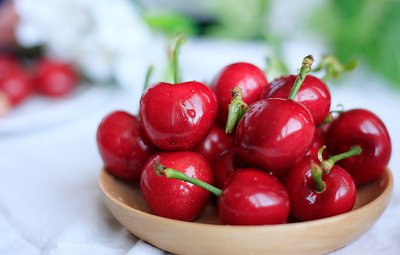 樱桃。春末夏初,樱桃“先百果而熟”,它营养丰富,丰含碳水化合物、蛋白质,也含有钙、磷、铁和多种维生素。尤其是铁的含量,每百克高达6至8毫克,比苹果、桔子、梨高20至30倍,维生素A的含量比苹果、桔子、葡萄高4至5倍,食用樱桃具有促进血红蛋白再生及防癌的功效。