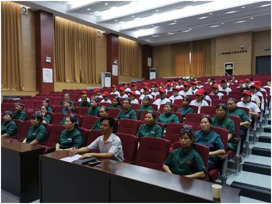监督管理局王小平科长重点围绕《国家食品安全法》《学校食品安全与营养健康管理规定》进行了详细的解读,从原材采购验收、加工、烹饪、出售、留样等环节提出了八个方面的要求,他希望食堂所有炊事从业者要认真严格落实食品安全制度,把好每一道关口,严守每一个环节,夯实每一份责任,特别针对夏秋季节,是食品安全事故的高发易发期,教育大家要树立高度的食品安全意识,尽职尽责,为师生提供安全、健康、营养的餐饮服务。