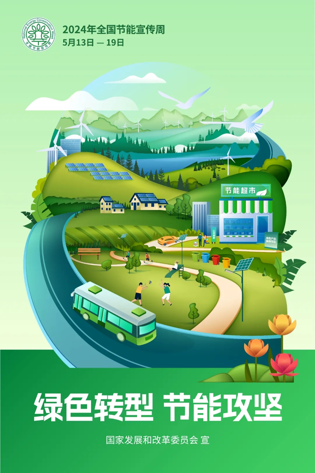 为深入学习贯彻习近平生态文明思想,落实全面节约战略,传播绿色发展理念,充分发挥公共机构在全社会绿色低碳发展中的示范引领作用,根据国家发展改革委、生态环境部关于开展全国节能宣传周和全国低碳日活动的工作安排,2024年全国节能宣传周为5月13日至19日,主题是“绿色转型,节能攻坚”,全国低碳日为5月15日,主题是“绿色低碳,美丽中国”。