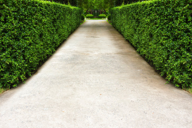 平面绿篱、图型绿篱、造型绿篱,都是为了符合设计要求通过人工修剪而成。修剪的作用:一是抑制植物顶端生长优势,促使腋芽萌发,侧枝生长,墙体丰满,利于修剪成型。加速成型,满足设计欣赏效果。修剪的原则:从小到大,多次修剪,线条流畅,按需成型。一般的绿篱设计高度为60- 150厘米,超过150厘米的为高大绿篱(也叫绿墙),起隔离视线用。修剪的技术要求是:绿篱生长至30厘米高时开始修剪。按设计类型3-5次修剪成雏型。修剪的时间:“首次修剪后,清除剪下的枝叶,加强肥水管理,待新的枝叶长至4-6厘米时进行下次修剪,前后修剪间隔时间过长,绿篱会失形,必需进行修剪。中午、雨天、强风、雾天不宜修剪。修剪的操作:口前多采用大篱剪手工操作,要求刀口锋利紧贴篱面,不漏剪少重剪,旺长突出部分多剪,弱长凹陷部分少剪,直线平面处可拉线修剪,造型(四型、磨茹型、房型、长城型等)绿篱按型修剪,顶部多剪,周围少剪。定型修业:当绿篱生长达到设计要求定型以后的修剪,每次把新长的枝叶全部剪去,保持设计规格形态。