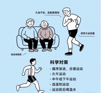科学对策:循序渐进,合理运动。选择中午或下午气温较高时活动,避免严寒刺激;优先进行太极拳、散步等温和运动,时长控制在30分钟内;运动前后喝温水,保持血液流通。