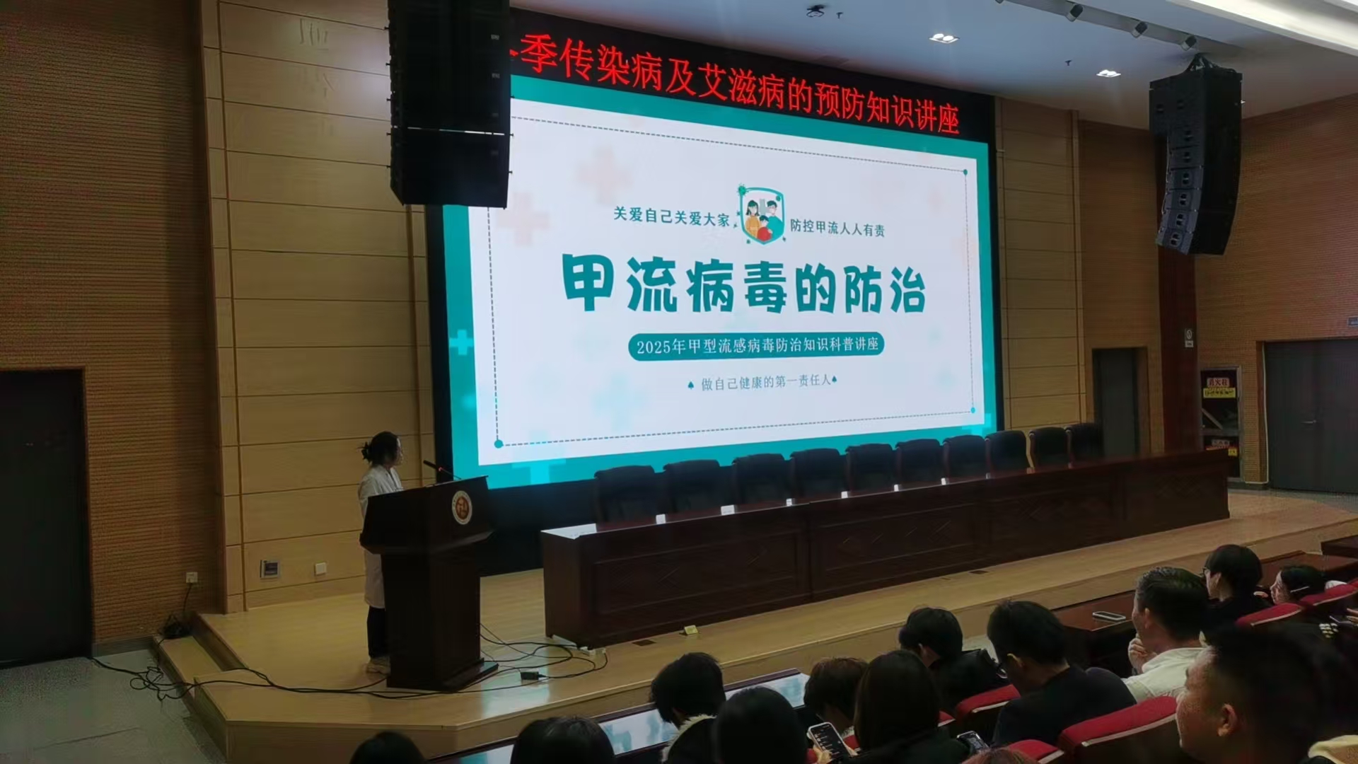 近期,甲型流感高发,防控形势严峻,同时适逢第38个“世界艾滋病日”宣传期间。为有效应对冬季传染病威胁,普及艾滋病防治知识,切实保障师生健康,陕西财经职业技术学院校医院联合吴家堡社区服务中心,于11月23日成功举办了冬季传染病与艾滋病预防知识讲座。本次活动在总务处的精心组织和学生处的密切配合下,吸引了五百余名师生踊跃参与,现场学习氛围热烈。