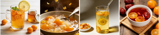 金橘梨汤:润肺清热,适用于肺燥咳嗽、咽干痰黄。