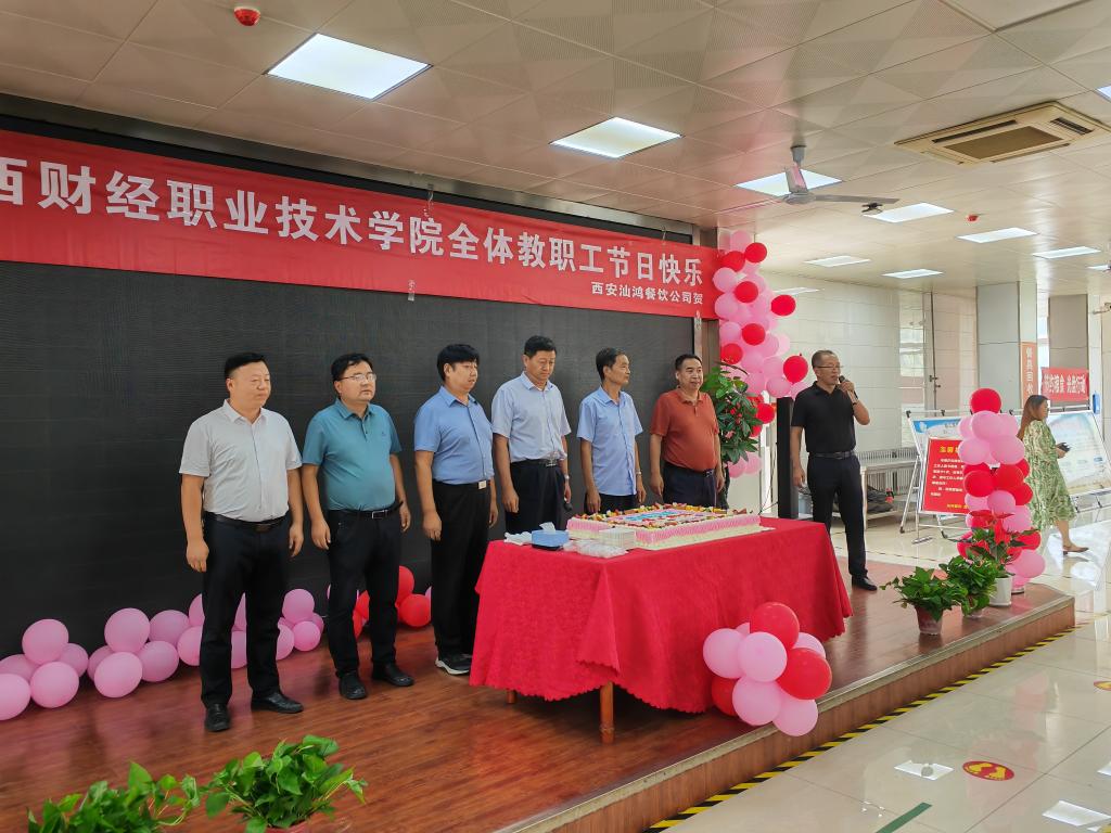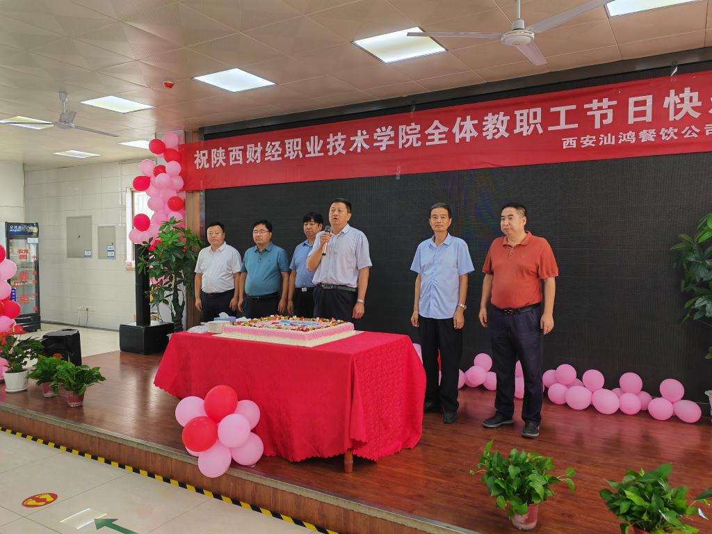 为了庆祝我国第39个教师节的到来,9月8日,总务处联合西安汕鸿餐饮管理有限公司在教工餐厅开展了教师节暖心活动,学院党委书记张志华和西安汕鸿餐饮管理有限公司总经理霍大裕分别致辞。学院党委副书记、纪委书记殷兴光,副院长张秦龙、王勇及西安汕鸿餐饮管理有限公司副总经理贾联恒参加活动,活动由总务处处长达航行主持。