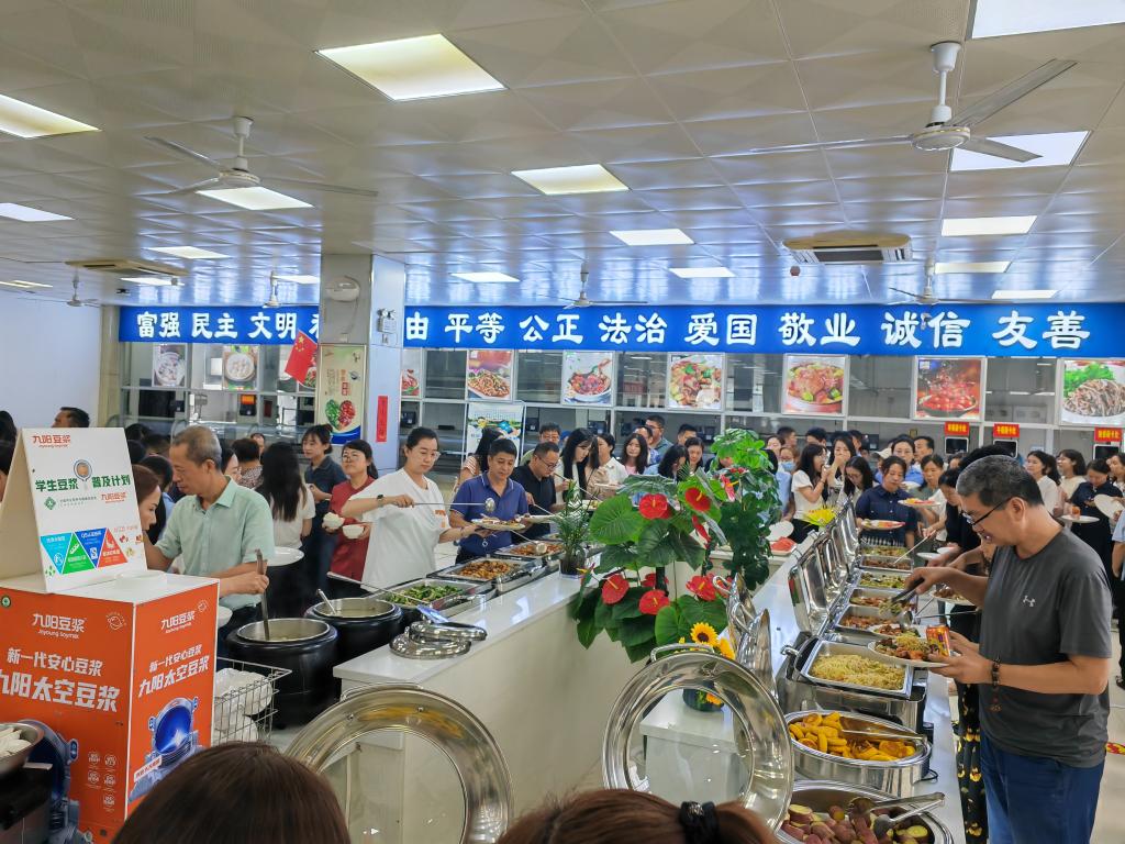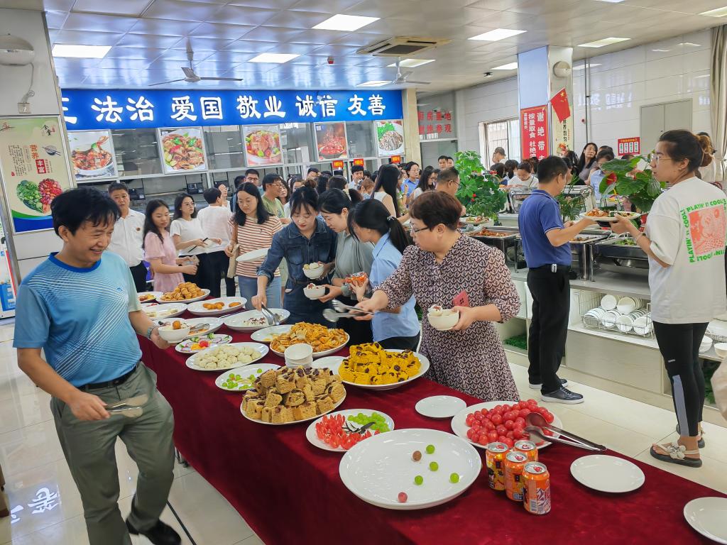 活动当天,教工餐厅的员工提早筹备,提前做好了各项准备,厨师们精心烹制,把最真诚的祝福烹调进一道道菜肴中,为老师们带来色味俱佳的美食盛宴。教工窗口的服务人员面带微笑,向前来就餐的教师致以节日的问候:“老师您好,教师节快乐!