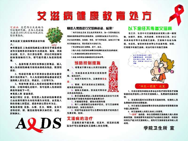 12月1日,总务处在校园举办艾滋病结核病预防控制宣传教育活动。2017年12月1日是第30个“世界艾滋病日”,今年的宣传主题为“共担防艾责任,共享健康权利,共建健康中国”。总务处卫生所在公寓、操场等学生活动的密集场所,通过发放宣传手册、图文展板展示、标语横幅宣传等形式,向广大师生普及艾滋病结核病预防控制的基本常识,珍惜健康,提高防控意识。11月30日,总务处负责人李积敏副处长和医生张飞侠参加了全省高等院校艾滋病结核病防控政策培训会,并把这次培训会的有关要求落实到了宣传教育活动之中。