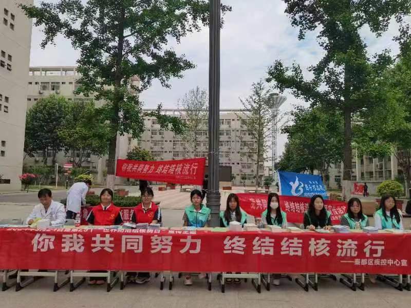 5月9日上午,校医院联合秦都区卫健委、秦都区疾控中心、秦都区民政局、秦都区团委、秦都区第一人民医院、吴办社区卫生服务中心,紧紧围绕“你我共同努力终结结核流行”这一主题,在综合楼前开展主题宣传活动。