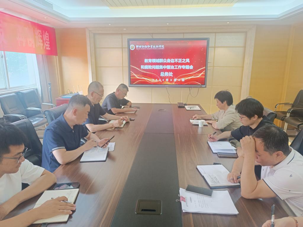 为深入贯彻落实上级部门及学校相关会议、文件精神,2024年6月4日下午,总务处召开教育领域群众身边不正之风和腐败问题集中整治工作专题会。总务处处科级干部及部分工作人员参加了会议,会议由总务处处长达航行主持。